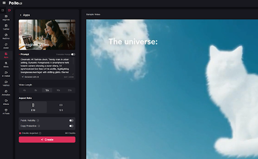In addition, Pollo AI provides a balanced approach between automation and customization. Users can guide the narrative flow while still benefiting from AI-driven generation. This makes it particularly useful for those who want efficiency without losing creative direction. Its interface supports different aspect ratios and formats, allowing content to be adapted for various platforms without requiring additional editing steps.